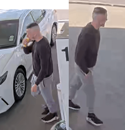 A man is captured on CCTV filling up the hired car at a service station on the Western Ring Road in Ardeer South on 25 December 2025.